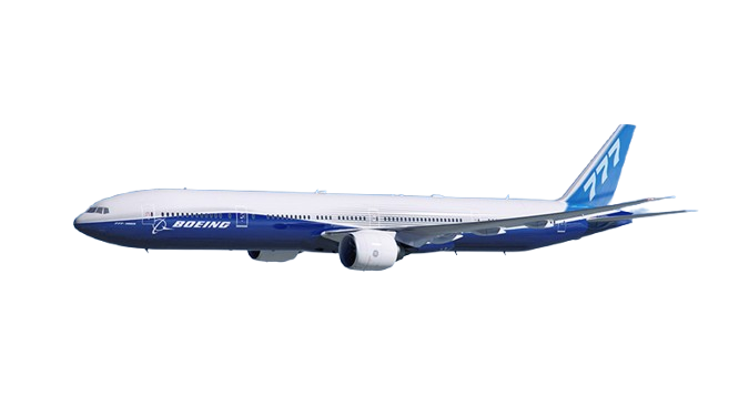 The Boeing 777 is a long-range, wide-body, twin-engine jet airliner renowned for its efficiency, range, and passenger comfort.